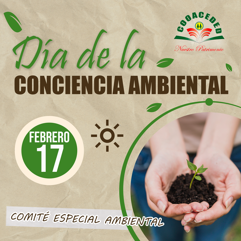 En COOACEDED, esta fecha la declara el Consejo de Administración a partir de la aprobación del Calendario Ambiental de la cooperativa (2021), para recordar el día 17 de febrero de 1964, fecha en la cual LA SUPERINTENDDENCIA DE COOPERATIVAS, mediante resolución Nº 0061 le reconoció la personería jurídica a nuestra cooperativa, igualmente para impulsar prácticas y actitudes responsables a la hora de relacionarnos con el ambiente. Esta fecha nos permite fomentar la comprensión de la interdependencia entre los seres humanos, reflexionar sobre el vínculo de nuestra sociedad con la Naturaleza de la cual forma parte y depende para su supervivencia.