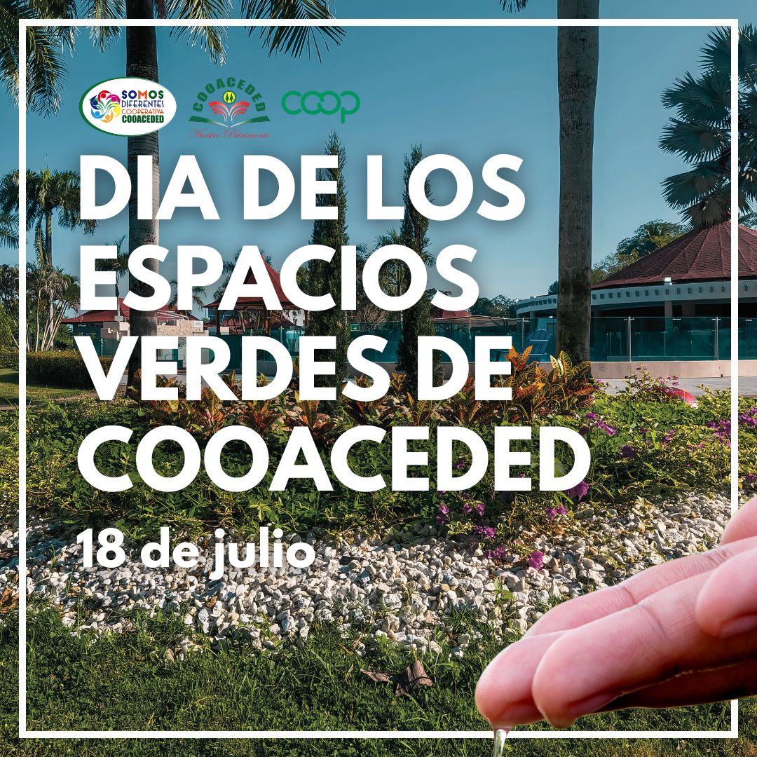 El Día Institucional de los espacios verdes de COOACEDED, se celebra cada 18 de julio. Fue establecido por el Consejo de Administracion en su reunión N°152 del día 22 junio de 2022 con la aprobación del Calendario Ambiental de COOACEDED, en el cual se establecieron los días de festejos y celebración ambiental para la Cooperativa en el orden mundial, nacional e institucional, por iniciativa del Comité Especial de Compras y Ambiental aprobada en su reunión N° 138 de 4 de mayo del 2022.